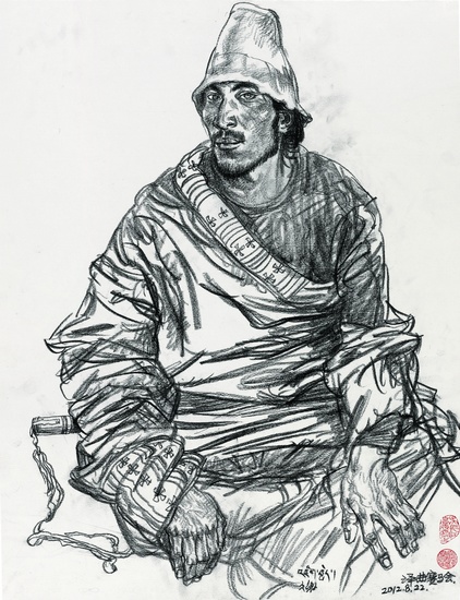 泽库赛马会上的牧民(炭笔、纸) 2012年8月22日