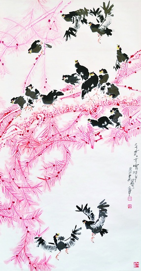 唐代诗人杜甫非常推崇南北朝诗人庾信,一再称赞“庾信文章老更成,凌云健笔意纵横”;“庾信平生最萧瑟,暮年诗赋动江关”。当代重庆老画家漆光,年逾八旬,从艺70年,擅长中国画写意花鸟和山水,笔力雄健,意气纵横,也可谓平生萧瑟,暮年绘画名动山城、声闻京华,而今他的名声甚至远播海外。