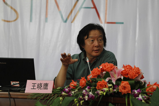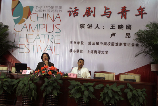 中国剧协副主席、国家话机院副院长王晓鹰伟向上海海洋大学学生讲述话剧在青年人中的地位