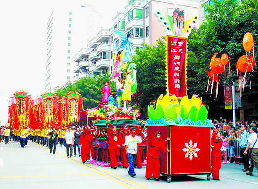 抬阁《蝶恋梁祝》2008年在广州番禺参加第七届中国民间艺术节暨第二届中国民间飘色(抬阁)艺术展