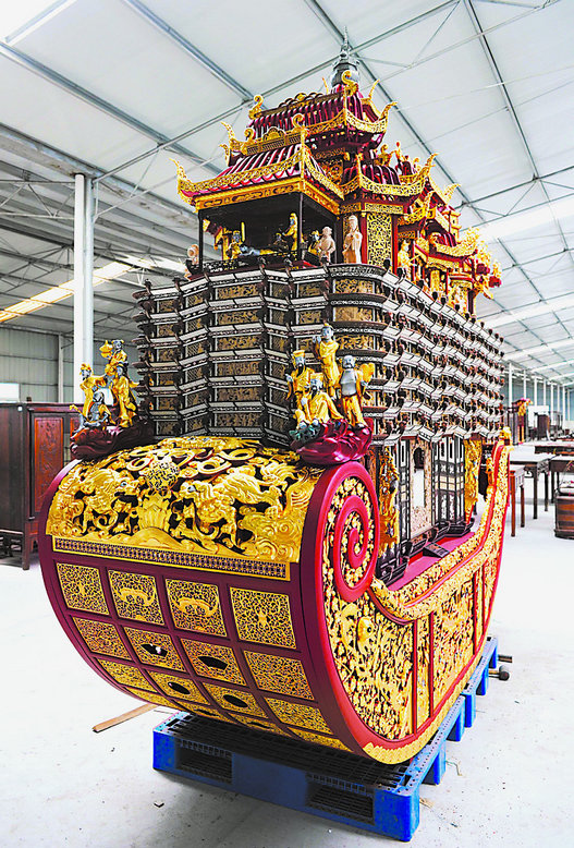此外,陈盖洪的朱金漆木雕《万工轿》、裘群珠的金银彩绣《甬上风情图》、陈明伟的沉香木雕《如意》先后获第九届、第十届中国 山花奖。今年8月,翔鹰企业投资300多万元,由百美甬式家具博物馆吴圣东等打造的船鼓成功参展中国(长春)第七届民间艺术博览会,冲刺第十一届中国 山花奖。