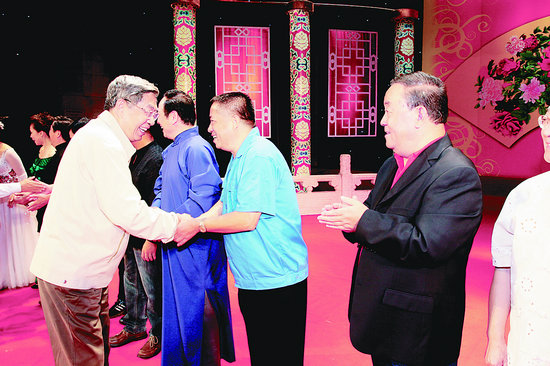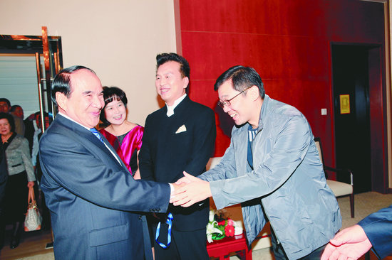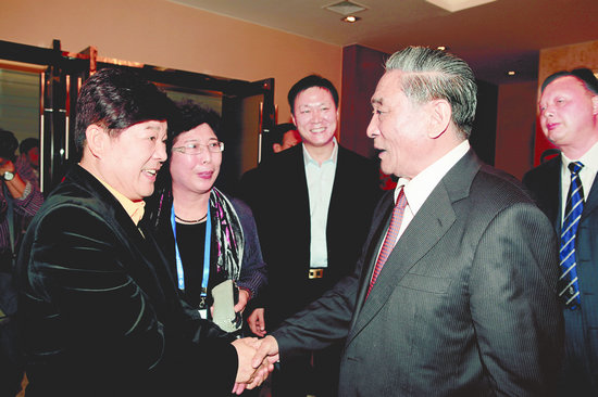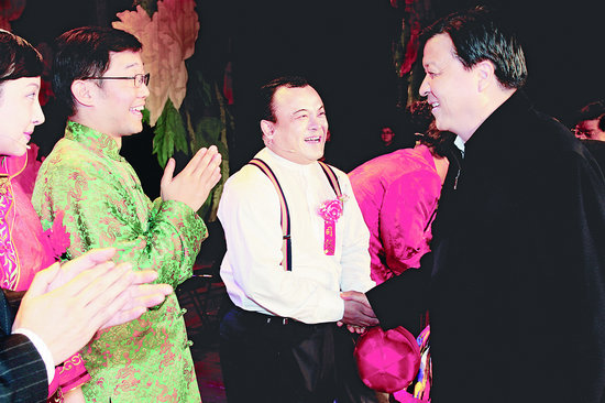 2011年10月23日,在浙江省绍兴县举办的第七届中国曲艺节闭幕式晚会前,热地接见曲艺演员