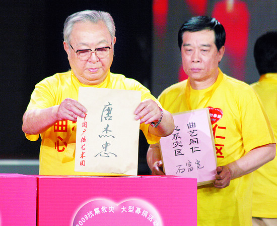 五年来,中国曲协组织和引导广大曲艺家和曲艺工作者积极参与抗击汶川大地震、玉树地震、南方低温雨雪冰冻、舟曲泥石流等重大自然灾害,开展了“爱的奉献——抗震救灾大义演”、“爱心化冰雪 真情暖人间——曲艺界抗冰雪赈灾大义演”、“情系舟曲 大爱无疆——曲艺界为甘肃舟曲灾区赈灾义演”等一系列抚慰心灵、鼓舞人心的慰问募捐活动,广大曲艺工作者迅速反应、编创节目,踊跃捐款捐物,充分体现了对祖国、对人民的大情、大义、大爱。