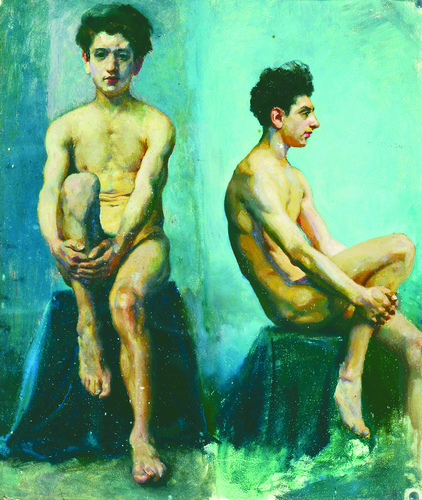 徐悲鸿创作于一九二四年的油画《男人体正侧面速写》