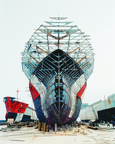 2005年,爱德华·伯汀斯基第一次来到中国,中国的三峡大坝、煤矿、炼钢厂、造船厂、回收站和壮观的制造车间等工业厂区给他留下了深刻印象。他用独特的视角记录下中国的经济、中国的发展和中国的生活,他的作品中这些看似冷漠的工业厂区散发出一种怪异却独特的美丽。他的大幅彩色相片表达了人类不断延伸的足迹和物质上我们对这个星球表面的重塑。如果用一个词汇去描绘爱德华·伯汀斯基的工作,大概会是法语的“Jolie-laide”,即地景伤疤。