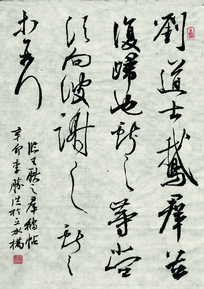 李胜洪幼年在严师督导下习书各体,尤醉行草。他在历史悠久、钟灵毓秀的湖北荆州长大。战国时期,那里曾经是楚国的都城,创造了以构思独特、色彩斑斓、动势飞扬为主要特征的楚文化。也许是浩瀚不绝、万里长江的启迪与滋润,抑或是千年传统文化的积淀与熏陶,他的作品总是充满着想象与灵性。上世纪90年代初到海南后,他又先后担任省书协副主席、省刻字艺术研究会会长等职,在这块神奇的热土上开阔视野、努力探索,使艺术得到了进一步升华。对于传统的继承,他能够以最大的毅力钻进去,书法技巧、临习碑帖、书学理论,无不是苦心孤诣、务求真谛;对于创新,又能“信古”而不“泥古”,以极大的勇气打出来,新的理念、艺术品位和时代气息,均是其孜孜不倦的追求。走近李胜洪,你会发现他是一个热情坦荡、恭谦低调且艺术悟性极高的人,一如其字。品读他近期的大作,雄浑飘逸、峻拔豪荡,使人耳目一新。李胜洪以其睿智、学识和创作实力,大器晚成,故而能在书坛产生越来越大的影响。