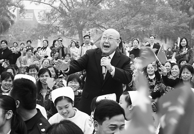 “还戏于民”。身为中国戏剧家协会主席,他把这个定为协会工作的重点,组建中国剧协“梅花奖艺术团”,送戏下乡,下基层,他总是身先士卒,一般压轴登场,劲头足了再加演一段。