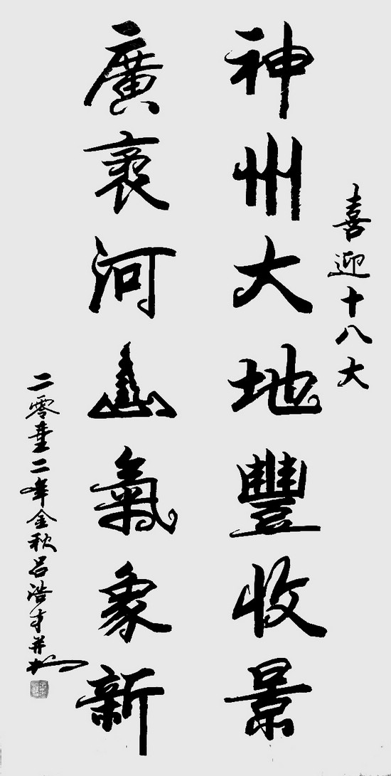 编者按:中国共产党第十八次全国代表大会胜利召开,全国上下受到极大鼓舞。北京市西城区书法家协会会员们为了向十八大献礼,积极组织广大会员创作了一批以歌颂党的丰功伟绩为主题的书法作品,于10月15日、11月5日、11月15日分别举办了“激情翰墨”“盛世和谐”“展望幸福”三个主题书法展,共有120位书法家的近两百幅书法作品参展。