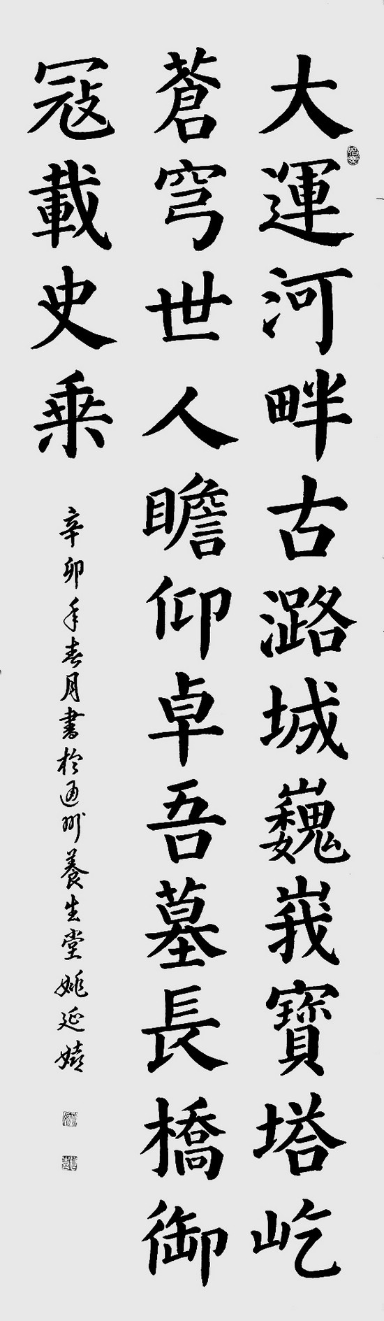 姚延嬉此幅楷书作品,书写不成功。颜不颜,柳不柳,欧不欧,仿宋不像仿宋。楷书最大的标志是点画精严,结体准确。显然此幅作者书写时间不长,还处于最最基础阶段。