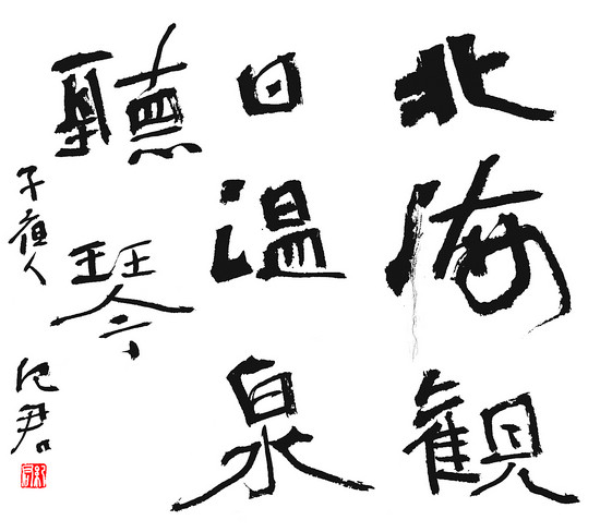 如果将纪君单纯定位为书法家似乎不足以体现他的整体艺术水准,他更是一位真正富有创造精神的艺术家。近些年来,纪君在书法、摄影、诗文乃至电视编导等方面都卓有成就。纪君出道很早,早在上世纪90年代就在山东省美术馆举办过大型个人书法展,曾产生过不小的轰动。自我认识他那一天起,就见他留着那一头飘逸洒脱、后来渐渐成为他标志性的秀发,这似乎也成了纪君的个性符号与“形象招牌”。