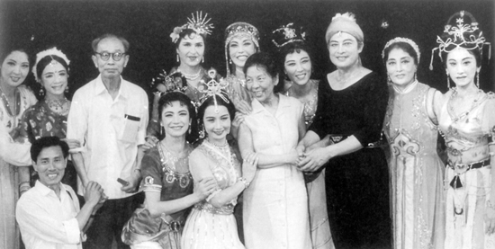 一九八○年参加第一届全国舞蹈比赛开幕表演的舞蹈家们合影(左起:崔美善、张均、吴晓邦、姚珠珠、左哈拉、刀美兰、张曼如、戴爱莲、资华筠、贾作光、斯琴达尔哈、陈爱莲)