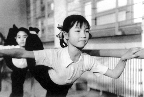 姚珠珠生于抗日战争后期,8岁在中央实验歌剧院舞蹈团学习舞蹈。图为10岁的姚珠珠练习古典舞,身后为钟润良。