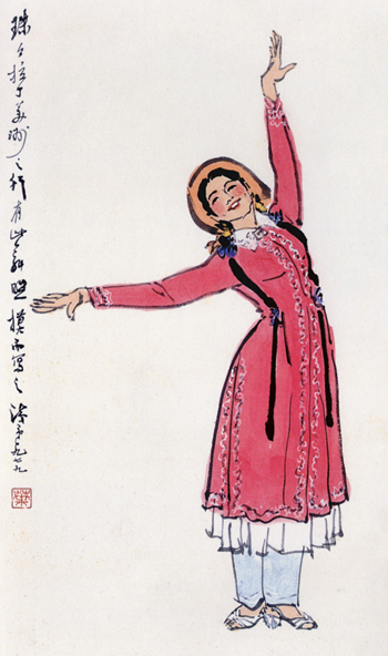 继而(时间跨度近十年),我成长了,介入了舞蹈研究工作,有机会目睹了同样开始“研究舞蹈”的珠珠老师,我们的距离拉近了!但这时,依然是我仰望她,而她不认识我。那也许是1989年夏天或稍后的某个时段,央视播出了她策划、主持的4集电视专题系列片《舞之灵》,实在说,我有意识地感悟民间舞蹈文化的影像,那不是个肇始,也是个最初的形象认知。那个片子,突然让我发现了“民间中国”的巨大魔力,感悟出另外一种舞蹈世界的精神无限和文化空间的神秘、纵横和贯通。我不知珠珠老师当时此举的心语和心路历程怎样,总之,我因之而成的震慑与好奇,几乎伴随了我之后的岁月,至今乐此不疲!这时,我开始意识到,珠珠老师作为舞者的“大气”,她是一个有智慧的大舞者。一个表演家,居然可以头戴斗笠、足蹬快靴穿行于崇山峻岭、荒漠高地,餐风饮露中发掘“草根文化”的茎叶,筚路蓝缕里苦寻民族精髓的养分,她努力打造的文化“主位”身份引导你深入了解民间文化的心理,她刻苦用心的“同吃、同住、同舞”传播了文化人必须具备的田野素质。