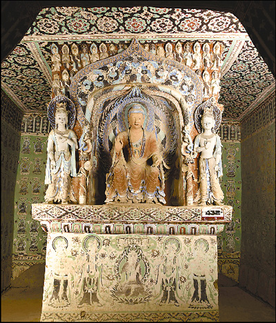 何谓“印象敦煌”?此次展览的策展人、中国对外文化集团公司副总监马瑞青介绍,“印象敦煌”首先是要通过敦煌文化展现一个开放包容的中国形象,同时也暗合了此次文化年“丝路之源,魅力中国”的主题;其次,因为敦煌是一个不可移动的文化宝库,这次展览的洞窟、壁画、彩塑作品以摹品为主,但依然能够传递敦煌独有的文化气息。