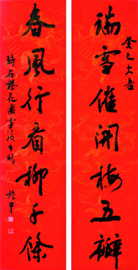 五代孟昶写下的“新年纳余庆,佳节号长春”,成为中国特殊的艺术形式——楹联的最初案例,后人承沿其意而久成习俗,每逢岁除,张挂春联迎新纳福。而今,中国美术馆在癸巳春节期间亦沿袭旧俗,举办“翰墨传承——中国美术馆癸巳新春楹联书法大展”,传承中国楹联雅趣。