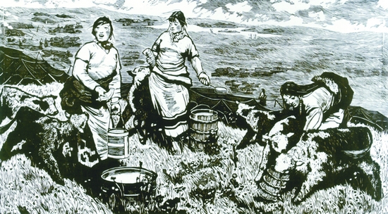 在版画创作的世界里,李焕民的坚守就好像有神灵的导引。“藏族是全民信教的民族,人们走路或者休息时,口里总是念着‘六字真言’。在他们心中,山川、湖泊都各有神灵。老人往往在神山圣湖边,拿着经筒一摇就是一天,静静地与