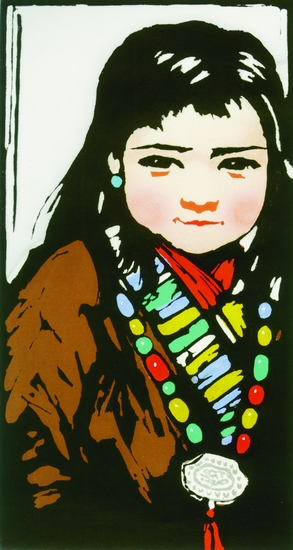 这幅套色水印版画《藏族女孩》是李焕民早期的作品,曾在日本获金奖,被收入《中国现代美术全集》(版画卷)。西藏、甘孜、阿坝,是李焕民大半生的目的地。每次他去体验生活,不但要画很多的速写、素描,还写了很多的日记,详细记录下自己在深入藏族人民生活之中的感受与对艺术创作问题的思索。一幅幅关于藏族的版画作品也让他走向美术事业的巅峰:作品《高原峡谷》获1956年全国青年美展一等奖,与《扬青稞》《攻读》《拉萨街头》《牧场》等作品一起为中国美术馆收藏;《初踏黄金路》被收入《中国现代美术全集》(版画卷)并作为封面;《换了人间》获1979年全国美展二等奖;《高原之母》获1996年全国版画展银奖。