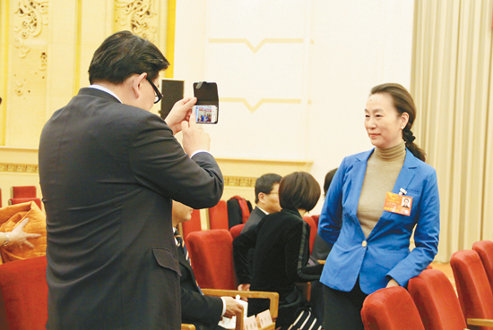 我们这个小组有很多优秀的女代表,比如说两届人大代表奚美娟,她以自己内敛含蓄的方式赢得观众的喜爱,她既是十八大代表也是人大代表,交谈中她有很多自己的想法。我们这一组还有农民工代表朱雪芹,她从农民转变成了一个新兴产业工人,在世界这个大舞台上找到了自己的位置。还有做财务工作出身的樊芸代表,她在发言中直言对国家财税部门的个人看法,很有魄力。总之一点,我们这个组的这些女代表不仅优秀而且非常年轻,同时也让我更加深刻感受到中国的女性真是非常了不起!