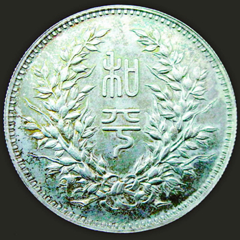 先说币本身,就其做工和蕴意来说,此币是由意大利著名雕刻师鲁尔治·乔治雕模,做工精巧,人物栩栩如生。银币正面铸段祺瑞半身西服像,上镌楷书“中华民国执政纪念币”九字,背面中央镌篆书“和平”二字,反映了当时的民之心声——和平。此币是段祺瑞就任民国执政时用于馈赠参加其就职典礼的各界嘉宾的,彰显出他的执政理念是顺应民意所求的“和平”。此币“和平”二字用嘉禾图托之。“嘉禾图”是指生长得特别茁壮的禾稻,古人视嘉禾图案为吉祥的象征。