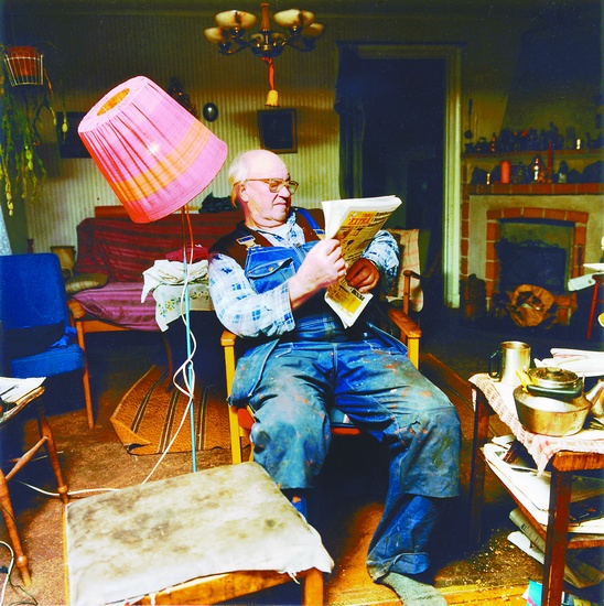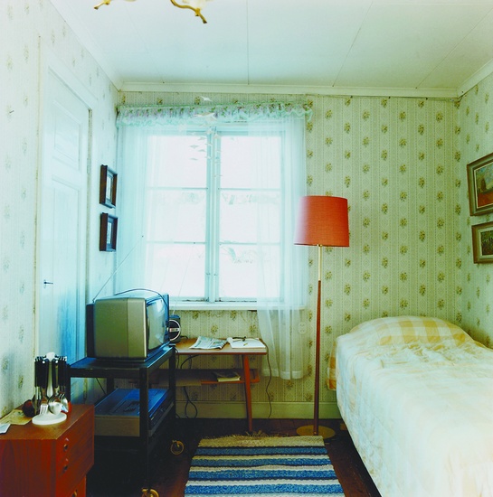 单纯从照片来看,我们可以想象这是北欧典型的孤独老人的生活。窗外白雪皑皑,玻璃上的一条裂纹用一段胶带粘在一起,而一眼看去的无边白雪,也许暗示了老人住的这所房子远离城市或村舍,孤零零地矗立在林中。彼得的这组照片用非常平实客观的视角,没有大广角和奇异视角带来的视觉冲击。除了几幅斯万在家中的环境肖像外,整个系列拍摄的都是和斯万生活有关的物件,往往是近距离拍摄,揭示了丰富的细节,同时也消解了任何感情的色彩,冷静而客观。与彼得拍摄的其他系列不同,这组照片采用了彩色摄影的手法,少了他以往黑白摄影中的诗意,却使普通的物件被胶片真实记录下来。