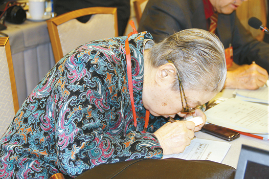 认真的李世济委员 本报记者 李博 摄