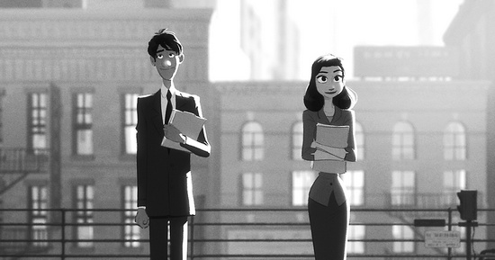 黑白色调中,没有任何语言,故事完全依靠画面和音乐的配搭。虽然是第一部独立执导的作品,但导演John Kahrs却运用多种影像语言,营造出一个发生在20世纪中叶的纽约,因浪漫邂逅而起,曲折不断又动人心弦的爱情故事。