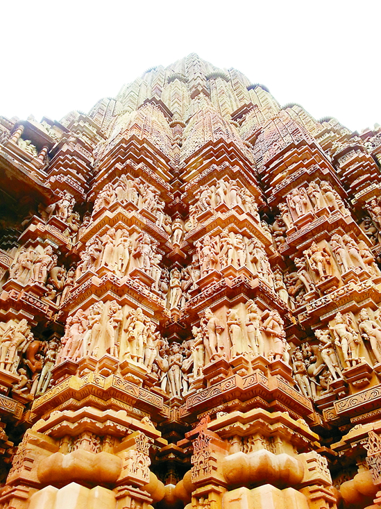 克久拉霍 印度寺庙外墙上的各种动物与人形非常繁复,动作和神态都极富生活气息,而且以明快大方的形式呈现出来,表现手法令人赞叹。