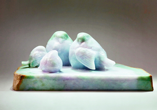 其四,材料拓展。2012年6月,许鸿飞在广州举行翡翠雕塑作品展,展示了30件以名贵翡翠材质制作的艺术品。他说,第一件翡翠雕塑很费劲,两个月才弄出来。而最后的效果则让许鸿飞大感意外——翡翠材质恰切还原了胖女人的珠圆玉润,丰乳肥臀充盈着温润的光泽,材质成了雕塑语言的一部分,他的风格特色获得进一步彰显。而在展出现场,许鸿飞更听取建议引入了“车模”理念,光艳照人的“艺术品模特”与《肥福》《肥二代》《四喜》等让人开心的“翡女人”一同展示。许鸿飞以“翡翠雕塑第一人”再度成为媒体热点,他不拘一格的艺术思维,也给人带来新的启示。