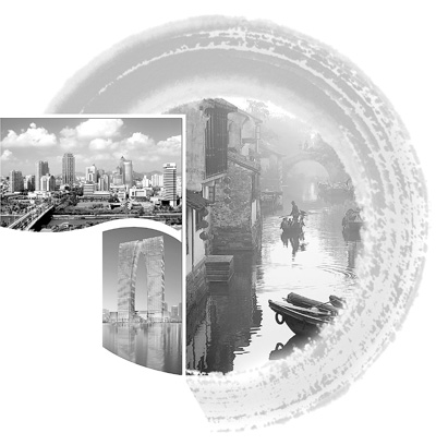 苏州市民都知道,有两个苏州。古苏州静静在此,新苏州一东一西,建在古城外。浅浅一道护城河,隔开了古代神韵与现代精彩:古城内,临街商铺,沿河人家,依旧粉墙黛瓦;古城外,建筑鳞次栉比,有“东方之门”之称的大楼映在金鸡湖面。