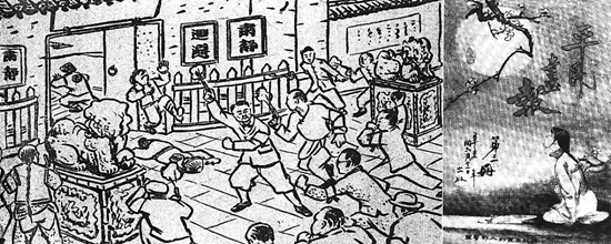 除此之外,展览中还展出了一幅1911年7月出版的《平民画报》刊载的黄花岗起义军“焚攻督署”图。此图形象描绘了在1911年4月27日下午5时半,黄兴率领先锋队攻打两广总督府时的情形。图中先锋队队员们臂缠白巾,手执枪械炸弹,将督府卫兵一举攻溃,并准备放火焚烧督府衙门。此图刻画得形象传神,充分表现了起义军临危不惧、英勇豪迈、不怕牺牲的革命气概和崇高品格。