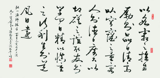 “就好像交响乐,是有规律的,错一个音都不行,但没有人攻击卡拉扬指挥那么严格,马连良的唱片声音嗤嗤的,但是他的声音和胡琴,谁也比不了。偏就中国书画可以没有规矩了,为了创新,飞蛾扑火,各领风骚三四年,毁了很多艺术家,从85新潮到现在,有几个可以和李可染相媲美?关键是我们没有踩到传统的根上。对于艺术,我们还存在着‘运动’心理,真正的文化建设,是传承,这需要我们冷静地来思考。”张明明坦言道。