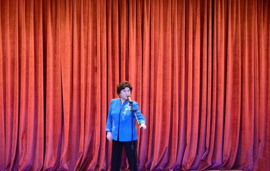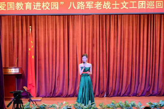 演出开始前,放映了八路军老战士文工团制作的爱国教育专题片《爱国大业》。片中十位领导同志(顾问)的精彩演讲和发自肺腑的感言,掷地有声,加深了教职员工和学生们对爱国教育的感悟,使学生们深刻理解到了爱国主义的重要性。