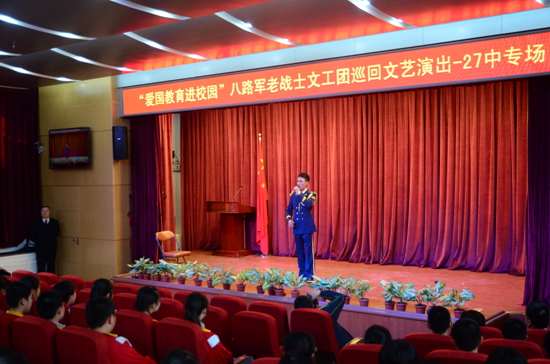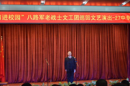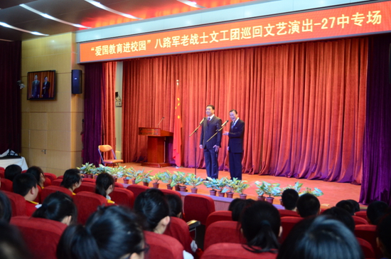 4月15日,“爱国教育进校园”八路军老战士文工团巡回文艺演出在北京市第二十七中学举行。kaiyun电子 副主席刘兰芳和北京市有关方面负责同志出席并观看了演出。