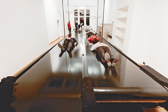 在中国美术馆侧厅的最里面,是藤幡正树的《不会反射的镜子》,构建了一个颠覆的空间——观众行走其间,在镜子中看到的是自身的空洞和反向,我们可以说它是“一种重组的现实,在这其中,虚拟穿越了实体”。我们怎样评论这样的媒体艺术作品?或许正如美国艺术史学家约翰·拉塞尔所言:“人们对它的理解可以千差万别,但每个人的理解又都是正确的。”