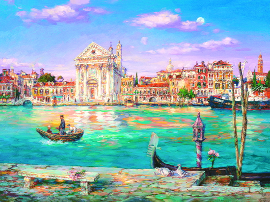 在曹勇的人生和艺术历程中,经历过3个至关重要的阶段:西藏7年、日本5年、美国10年。黄彦先生称之为“三度转换,三度跨越,三度升华”。如此全面的评述,对我这样的美术外行来说,实非力所能及。我所特别感兴趣的,是曹勇赴美后的代表性画作“威尼斯系列”、“金色海岸系列”、“浪漫花园系列”、“夏威夷系列”、“巴黎系列”和“地中海系列”等。