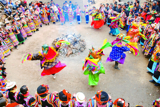 “烤街火长节”以寨子为单位,以火为纽带,全民参与的一项重大活动,从腊月初八开始,到第二年正月十七结束,历时四十天。烤街火长节包括凑柴、烤火、讲故事、聊天、跳舞、正月十五迎火把等活动。在这四十天时间里从不间断,年年如是。