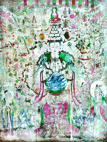 在武普敖眼中,壁画拍摄不同于一般的拍摄。它是通过摄影的纪实特点,再现古代壁画的艺术价值,真实性是第一要素,第二要素是色彩还原要准确,第三要素是清晰度要有保证。4×5或8×10大画幅座机,反光板和三脚架的灵活使用,保证了古代壁画的庄严、宁静、厚重与质朴的艺术特点。