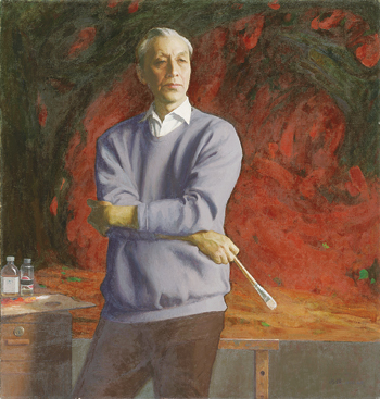 荣获第二届“中国美术奖·终身成就奖”的著名油画家詹建俊5月15日出现在中央美术学院美术馆的四层展厅内,仔细地观看一幅幅根据靳尚谊经典油画、素描作品复制的版画。红色的展厅墙面,在暗黄的灯光下,增添了几分凝重的感觉,那幅《画家詹建俊》也赫然出现在展厅中央。再一次凝视老友为自己所作的作品,詹老也不由得陷入了片刻的沉思。