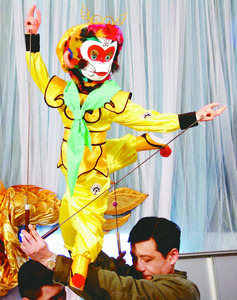 曹继宗与杖头木偶几乎打了一辈子的交道。2006年,已经退休的他看到愈来愈衰弱的木偶艺术市场,毅然带领另外几位退休的文艺工作者组建起一个叫“小金娃”的民营木偶剧团。于是,民间传统杖头木偶又在他们手指间活灵活现地演开了。