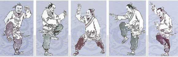 五禽戏。象形取意、仿生超越是刘俊骧创建的东方人体文化研究体系重要的美学规律,源自汉代医圣华陀的五禽戏和传为达摩创编的易筋经中,都有很好的“导气令和、引体令柔”象形取意的术法,这也是伏羲远取诸物、近取诸身创造八卦以类万物的规律。以鲲鹏万化为标榜的“鲲鹏太极”自然吸收了传统导引五禽戏、易筋经的一些招式。