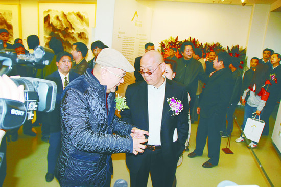万鼎与原陕西国画院院长苗重安在画展上交谈