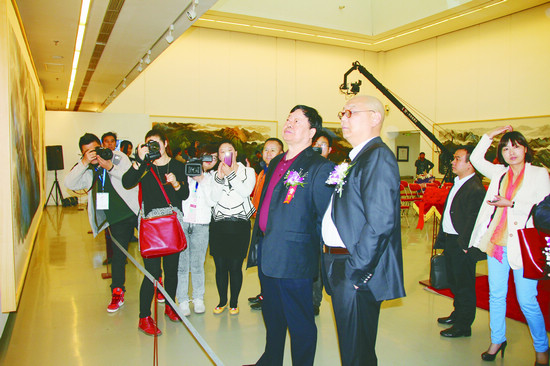 4月13日上午10时,“以丹青的名义——守护大秦岭”万鼎山水画展开幕式在中国国家画院美术馆举行。此次画展由中国美术家协会艺术委员会、陕西省文学艺术界联合会、陕西省美术家协会、陕西省广播电影电视管理局、西安美术学院主办。展览的70余幅作品以大秦岭山水为主题,集合万鼎两年来所创新作,其主旨是为了唤起人们崇尚自然、保护大秦岭的意识。万鼎先生的作品风格深厚磅礴、苍辣大气,融西北文化、中国传统技法与西洋技法于一体,展现了一种舒展宽广的艺术意境。