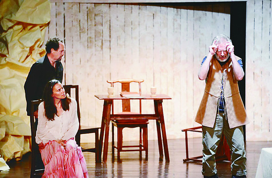 《铁轨之舞》的演出在乌镇西栅的国乐剧院。这座传统剧院建在水上,可推窗望河。舞台上的屋顶在修葺一新后,更显金碧辉煌、古意盎然。在这样的演出空间内,《铁轨之舞》现代、简约风格的舞美与充满厚重感的故事既凸显出历史的沧桑,也交织出人物心理结构的复杂多向。同在这座剧院上演的罗伯特·布鲁斯汀的《最后的遗嘱》也是一段历史故事:莎士比亚在临终前确立遗嘱,将大部分遗产留给他的大女儿,仅给他的妻子“我第二好的床”。戏剧巨匠在人生最后时刻经历了精神的狂乱,又在癫狂中希求最后的爱与温暖。国乐剧院别具古典东方的舞台演绎着英国人的故事,有1300年建镇史的乌镇映衬着莎士比亚时代的古老,巨大的中西差异却因相似的历史感而消弭。罗伯特·布鲁斯汀集编剧、导演及戏剧教育家于一身,被誉为“当代剧场的传奇人物”。《最后的遗嘱》结合艺术与生活,更以浓缩的手法全景式再现了莎士比亚的创作生涯,并精妙地将莎士比亚与他笔下的人物进行对照——当他病入膏肓、将自己的二女儿唤作《李尔王》中的“考狄利娅”时,观众感受到的是多个文本叠加后产生的情感冲击。
