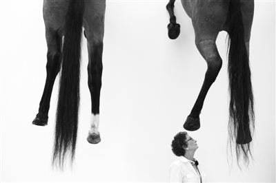 一位观众在瑞士巴塞尔观看意大利艺术家莫瑞吉奥·卡特兰的作品。图/IC