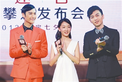 朱梓骁、周冬雨和陈晓(左起)出席昨日的活动。