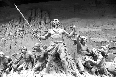 水洞沟遗址博物馆里的水洞沟人塑像。楼定和/CFP