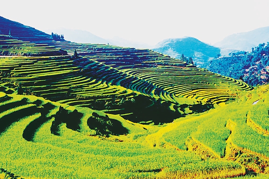 “看不够哈尼梯田,千年古道连天边,白云生处百花开,红河绕山水绕田……神奇的梯田,瑰丽的画卷,美丽的梯田,献给你哟美好的祝愿!”这首由彝族青年歌唱家姚林辉作词作曲并演唱的《神奇的哈尼梯田》6月24日再次唱响北京人民大会堂。