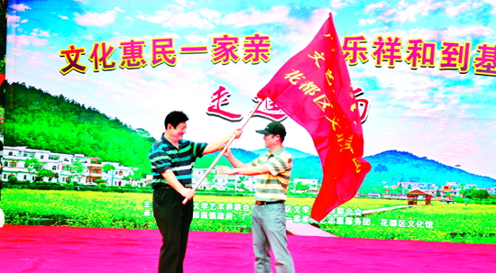广州市文联主席乔平向花都区文联主席授文艺志愿服务分团旗