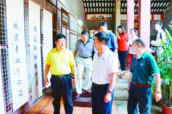 广东省文化厅副厅长杜佐祥(左二)在塘坑村书法培训基地考察书法课