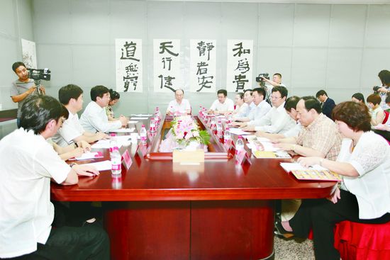与会领导和嘉宾就当代中国民族书画艺术的发展现状及本次签约的内容和前景进行了座谈。刘承萱在致辞时表示,在中央提出文化大发展大繁荣的时代背景下,为了实现中华民族的中国梦,弘扬民族文化,推动书画艺术健康发展,中国文化传媒集团与江苏同曦集团形成强强联合的战略合作,文化央企和地方知名龙头企业将形成合力,共同将中国美术院打造成为中国权威高端的书画艺术品牌。